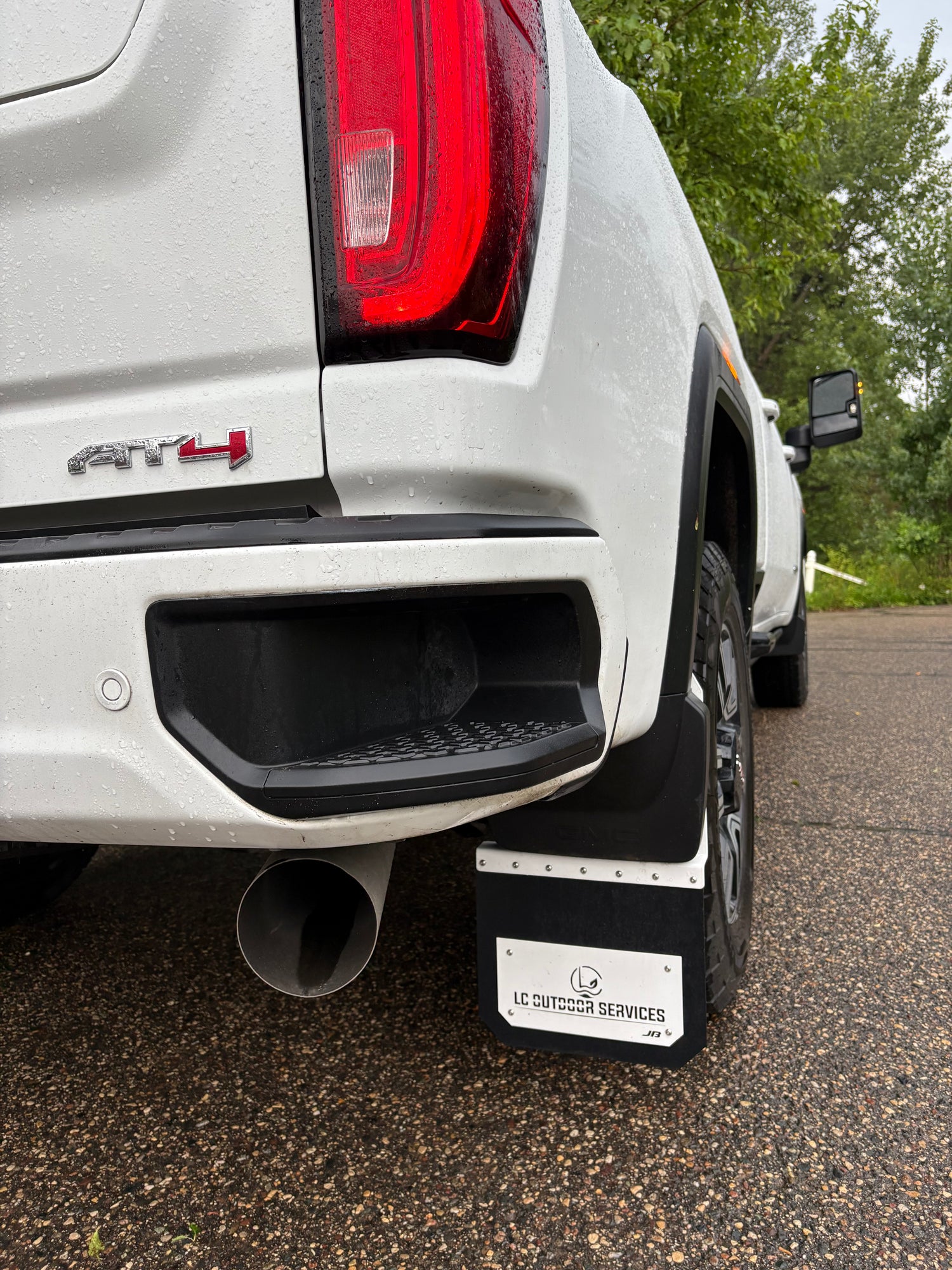 13in chevy/gmc kickback mudflaps done with a business logo on this customers truck.