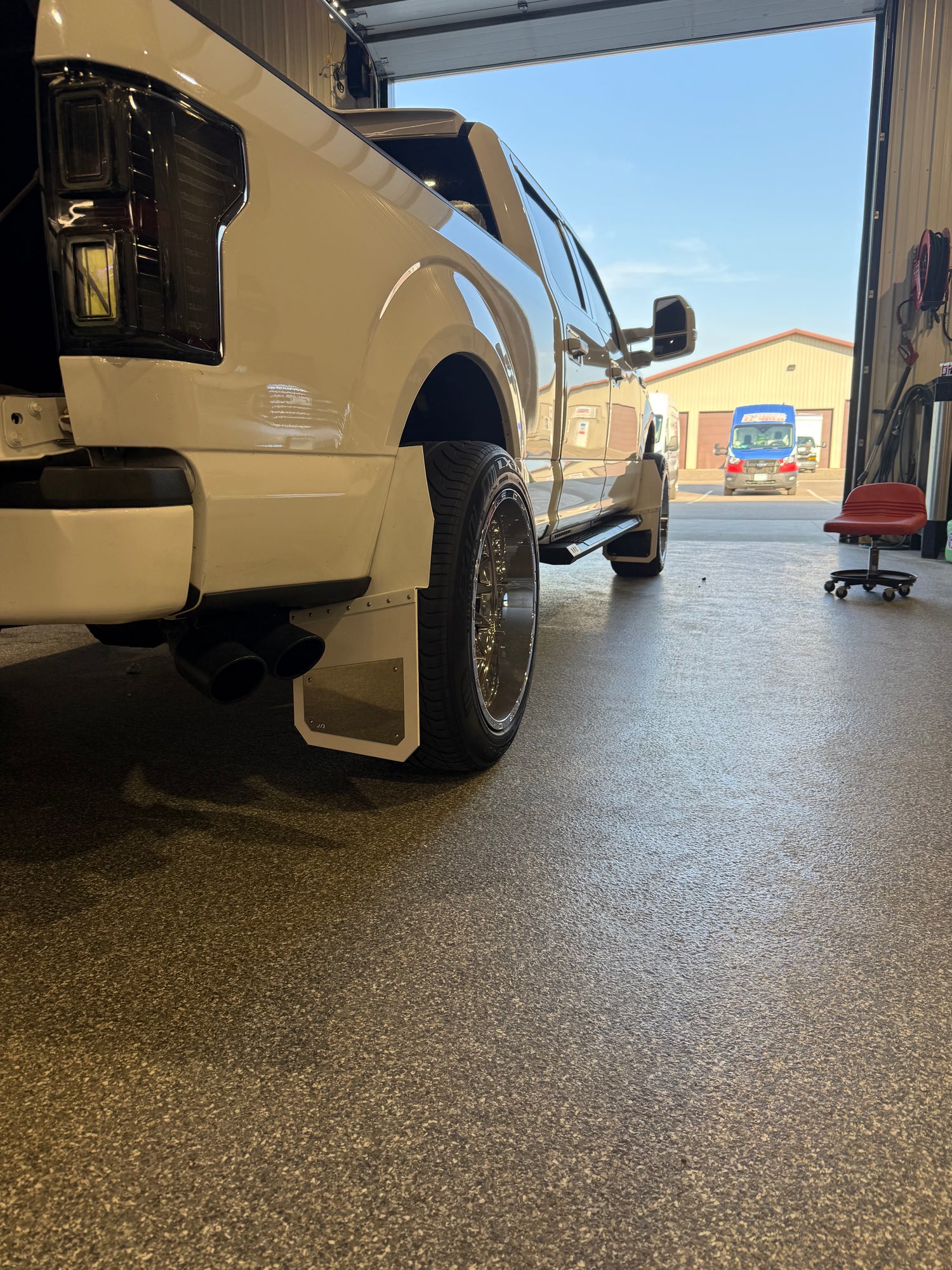 some custom 14in universal kickback mudflaps done for this steelbody f250!