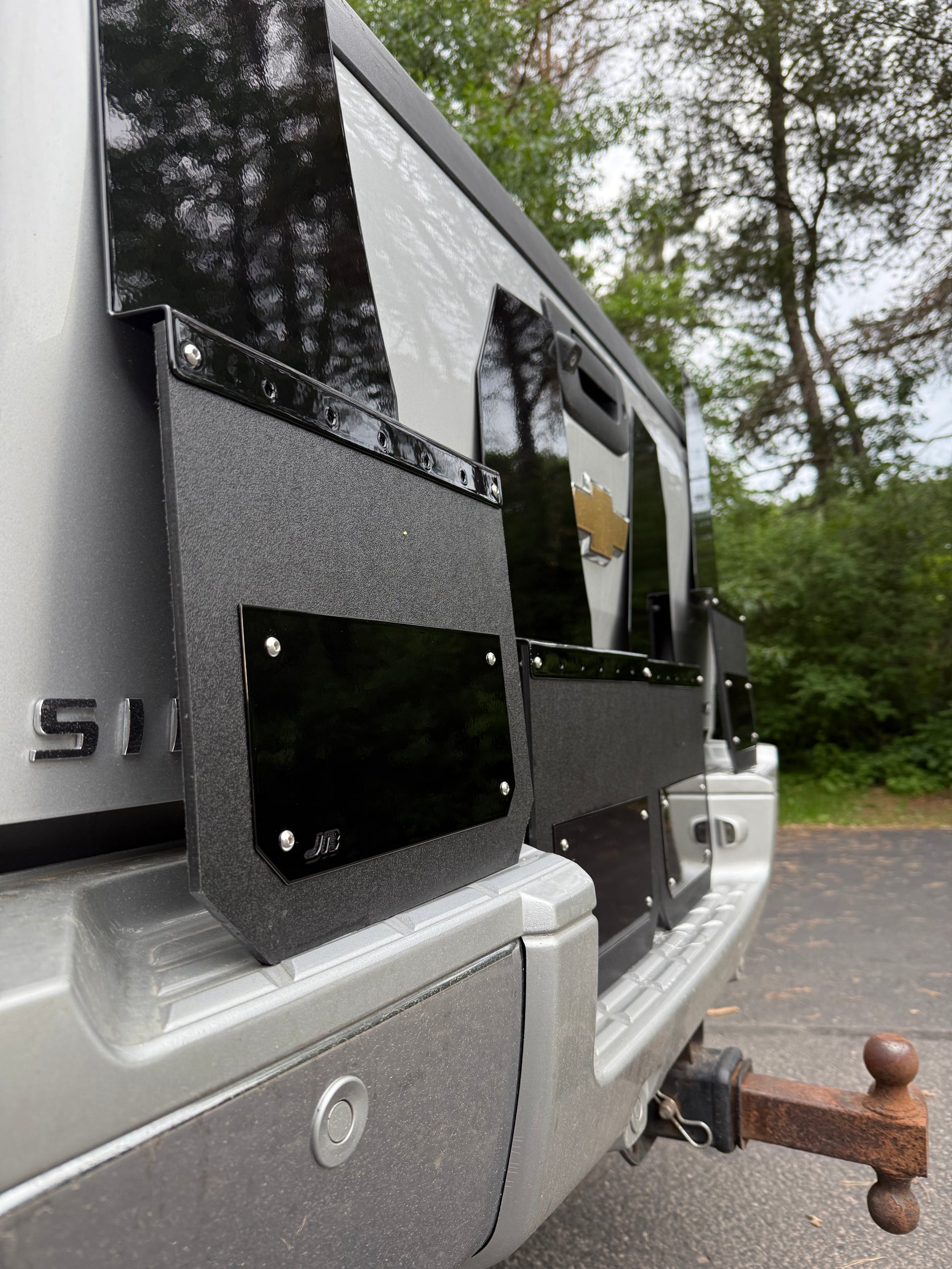 Keep your paint fresh and the cops off your butt with our kickback mudflaps! Whether your towing dump trailers to the jobsite or building your newest show truck, our mudflaps are the perfect accessory for that clean/functional look. We wanted to bring a you mudflap that will provide maximum protection all while adding a hint of style. With multiple widths, colors, and design options, the possibilities are endless. The straight kickback fits perfectly with Gm's plastic fender well extensions. Follow our guides below to ensure your getting exactly what you need!