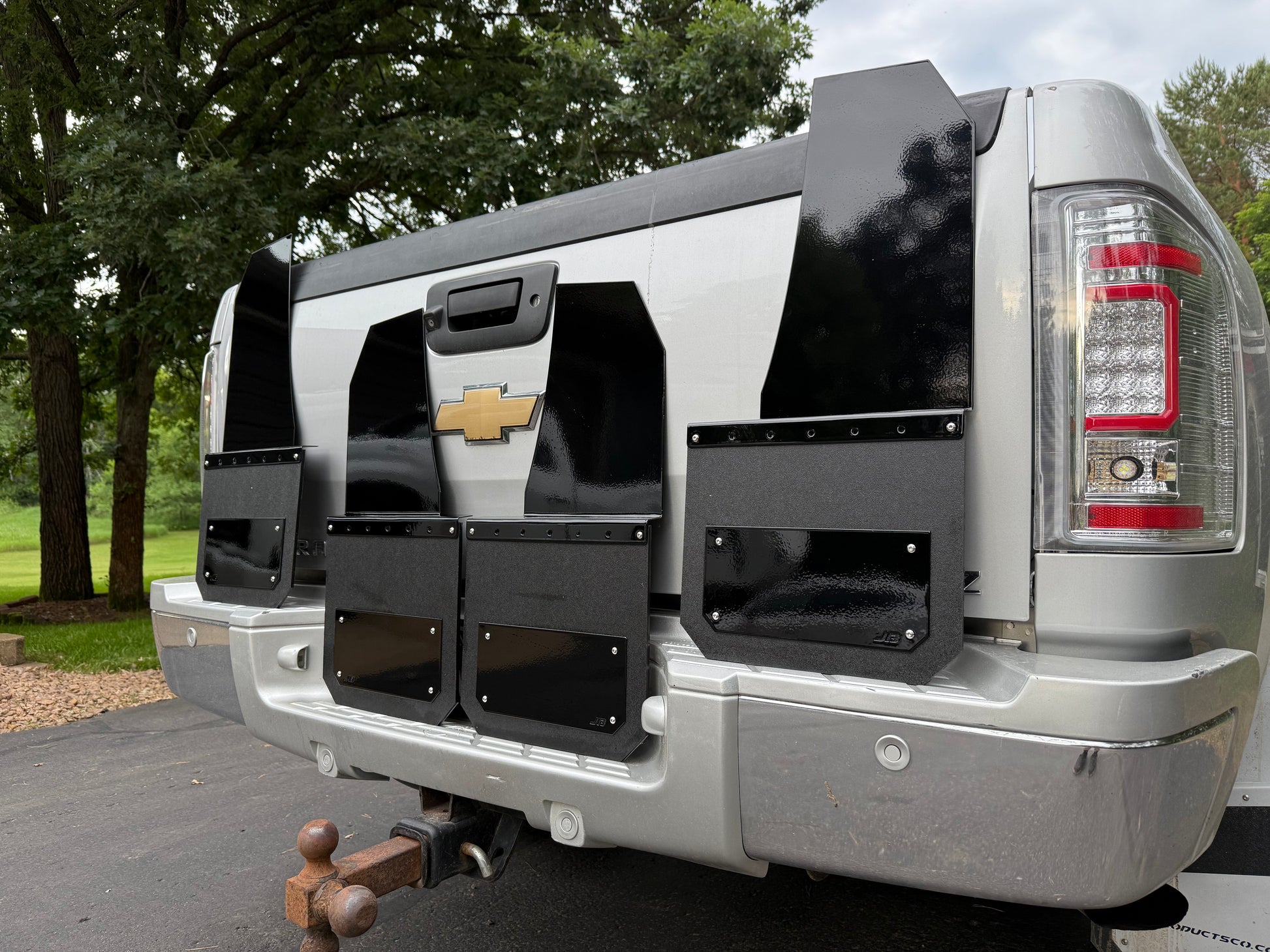 Keep your paint fresh and the cops off your butt with our kickback mudflaps! Whether your towing dump trailers to the jobsite or building your newest show truck, our mudflaps are the perfect accessory for that clean/functional look. We wanted to bring a you mudflap that will provide maximum protection all while adding a hint of style. With multiple widths, colors, and design options, the possibilities are endless. The straight kickback fits perfectly with Gm's plastic fender well extensions. Follow our guides below to ensure your getting exactly what you need!