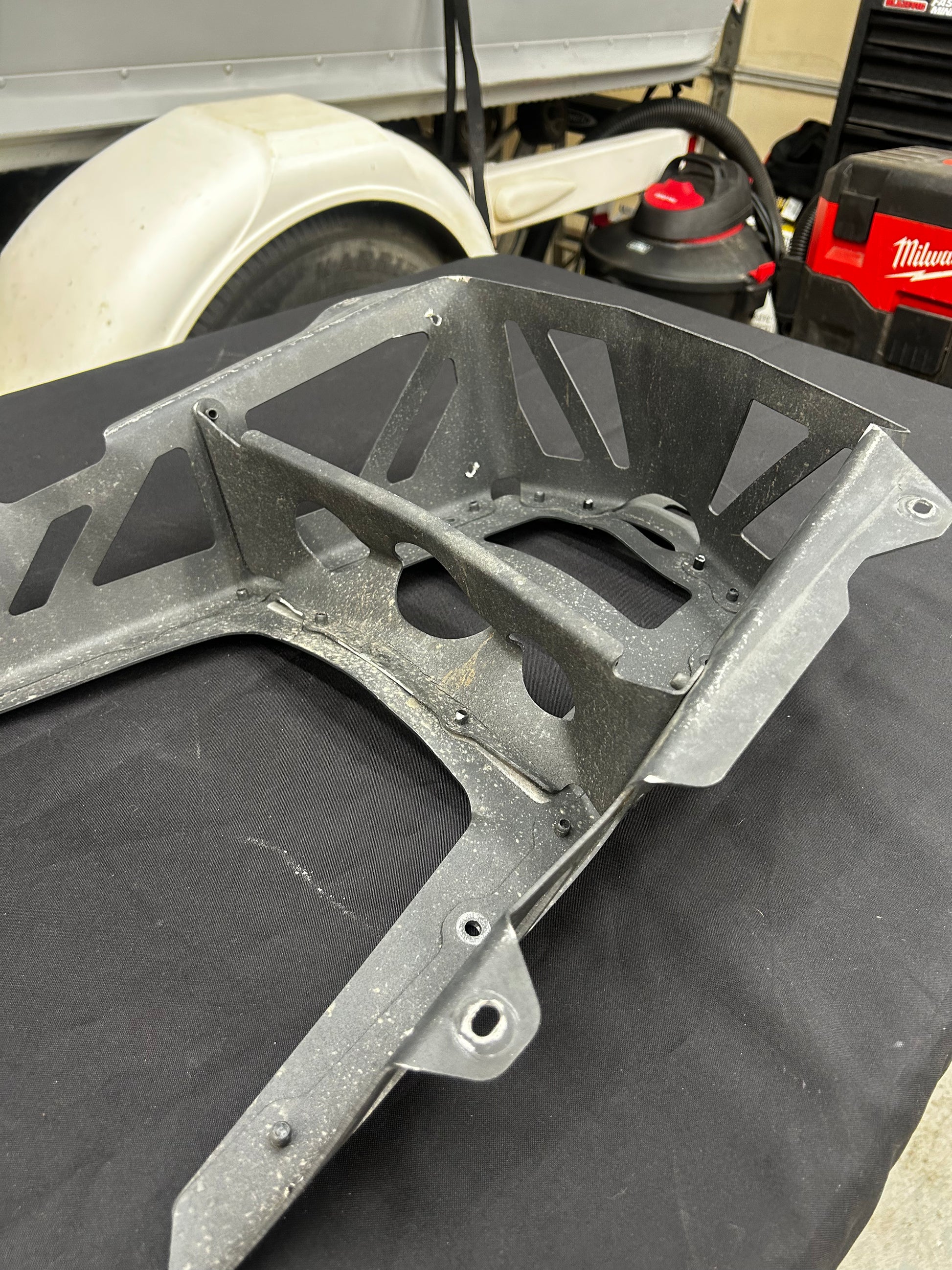 Stop bending seat brackets on our Skidoo RS! Our new seat bracket brace has been prototyped in national snocross for half a season and has proven its job by reducing bending/flexing of the seat bracket. The brace boxes off the rear half of the seat bracket, the area most prone to bending. It mounts using (ten) 3/16 rivets (included) This problem typically occurs if the rider is bigger, taller, or seat bounces aggressively. Save yourself some cash, Replacement seat brackets are $260 from Skidoo! You should be checking your seat base regularly on your Skidoo RS sleds for this issue. The last photo displays a damaged seat base!