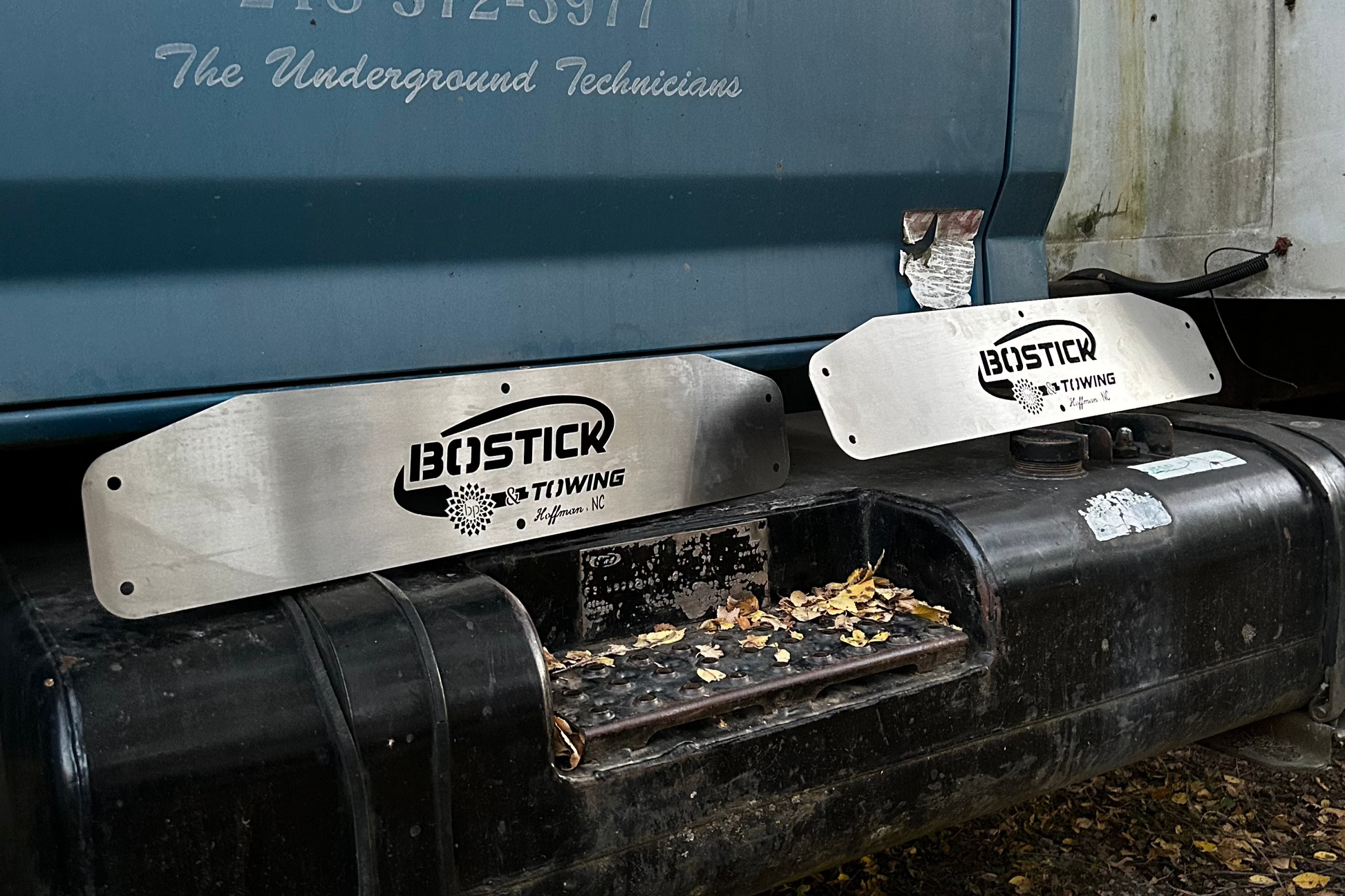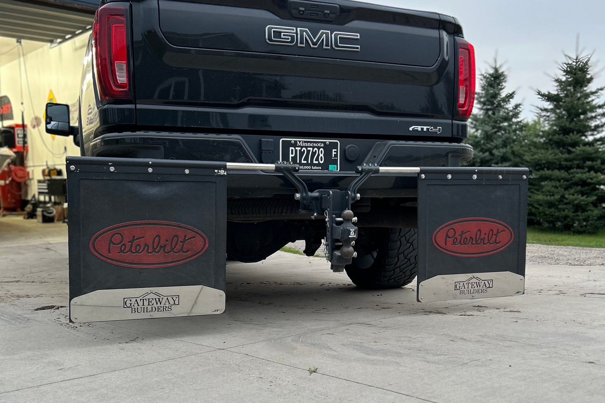 Add some style to your rig all while maintaining function with our semi mudflap weight plates. Our mudflap weights provide additional hanging weight to reduce the amount of flopping around of the mudflap while operating. Our custom designed weight plates are a perfect way to stand out from the crowd on the road and on display. These weights can be universal as well, commonly used on one-piece truck mudflaps, tow trucks, and large service trucks.