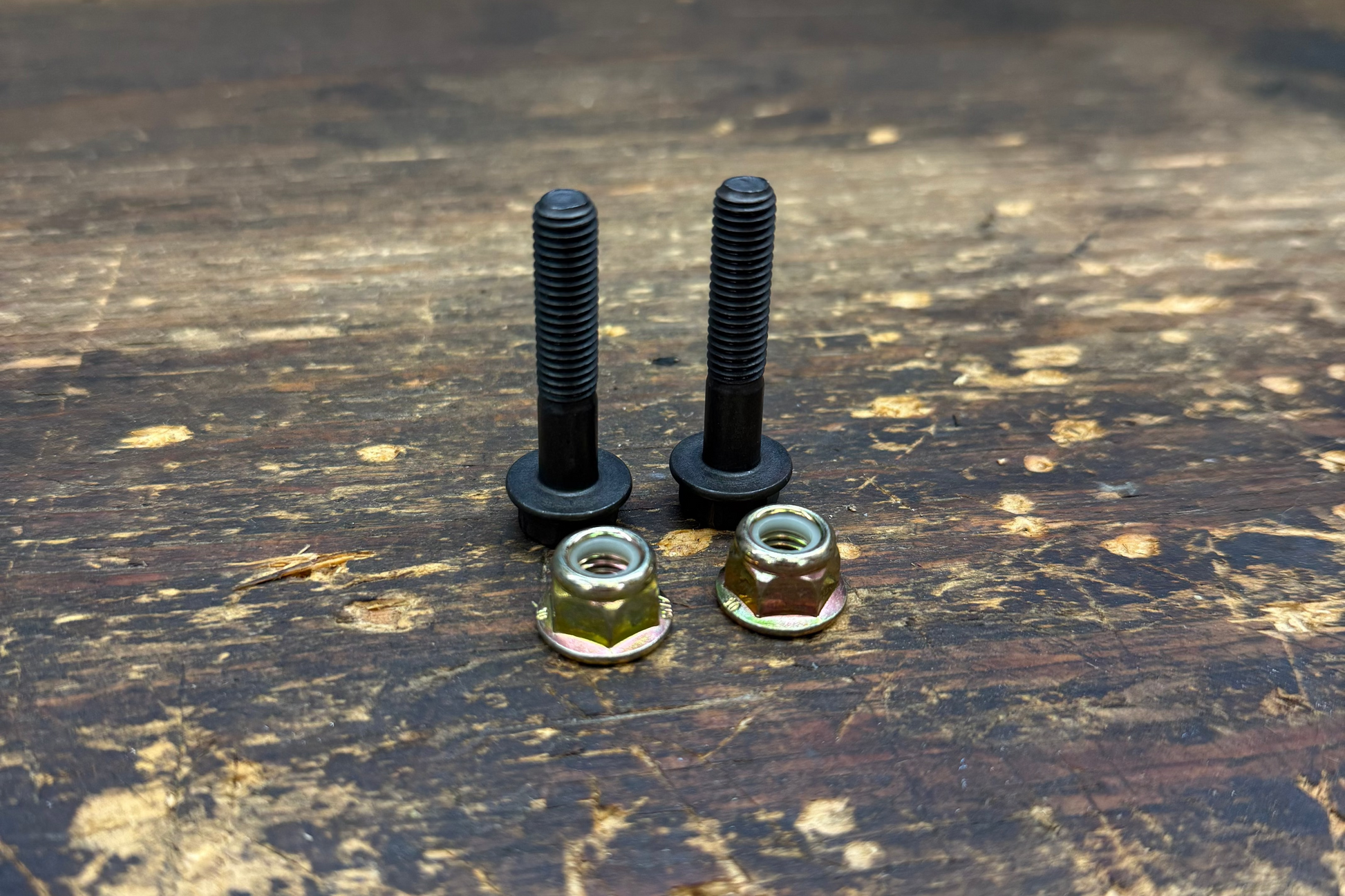This bolt kit replaces the two stock T40 Torx self tappers used to mount the engines LH side member (skidoo part # 512061447) to the E-Mod. The stock screws tend to come loose, and can easily strip their threads after multiple bolt checks. This kit utilizes the origional threads, with an additional lock nut on the back. This not only reduces the chance of them coming loose, but also allows you to continue using your E-Mod in the event the threads strip. This is a very inexpensive yet important upgrade to any skidoo using the above part number for its engine mount.